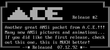 Early ANSI group from Finland. Identical name as the American group called ACE (Art Creation Enterprise). Renamed “ANSI Factory”.