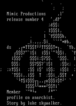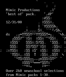 extensions: ASC (1111), ANS (887), DIZ (9), N3T (1), TXT (271), BIN (17), 003 (1), ZIP (10), NFO (7), PNG (1), JPG (20), HTML (1), RMX (36), SUE (1), GIF (4), 1 (1), MID (3), H7 (5), EXE (1), RDM (1)