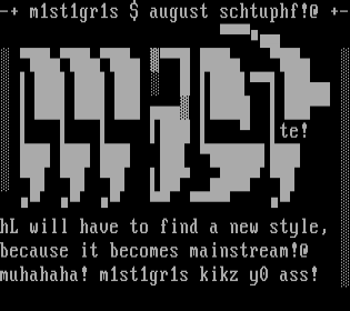 Mistigris (pronounced "misty-gree") is an artscene group founded in late 1994 by Cthulu of Vancouver, British Columbia, Canada.