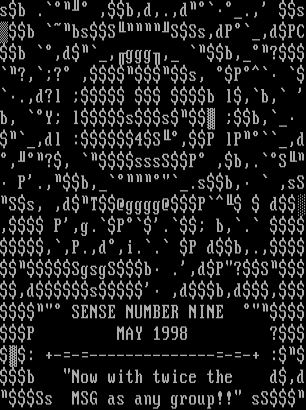 extensions: ZIP (5), DIZ (2), ANS (595), NEW (1), RIP (23), JPG (7), ASC (29), MEM (5), NFO (15), APP (1), S3M (1), GIF (1), IT (1), BIN (9), TXT (5), XB (1), EXE (1), TND (4)