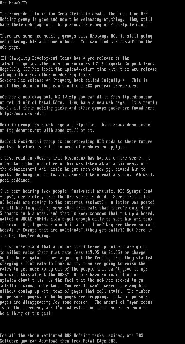 For all the above mentioned BBS Modding packs, ezines, and BBS