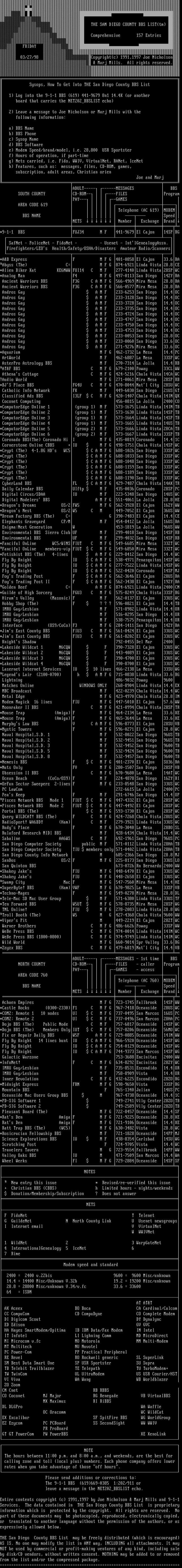 THE San Diego County BBS List may be freely distributed which is encouraged