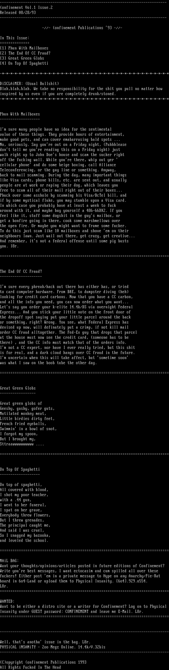 Want to be either a distro site or a writer for Confinement? Log on to Physical