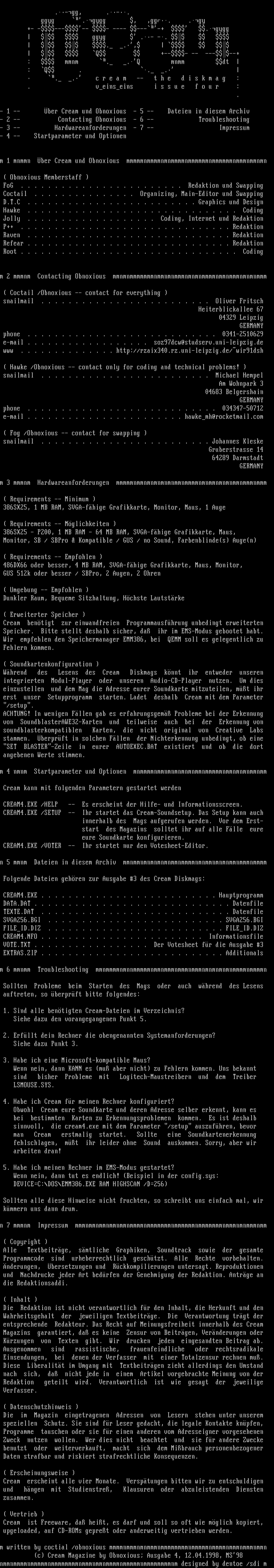 Folgende Dateien gehren zur Ausgabe 3 des Cream Diskmags:
