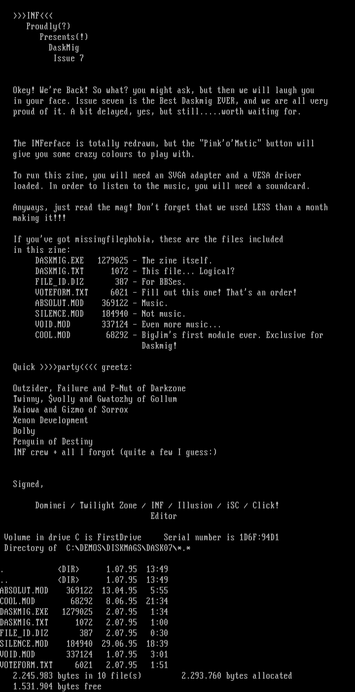 To run this zine, you will need an SVGA adapter and a VESA driver