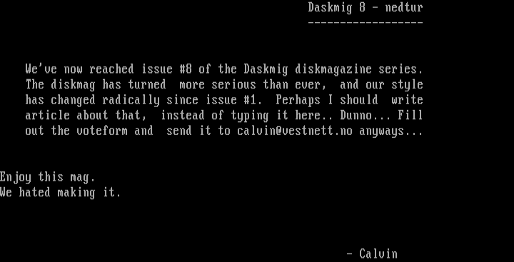 Weve now reached issue 8 of the Daskmig diskmagazine series.