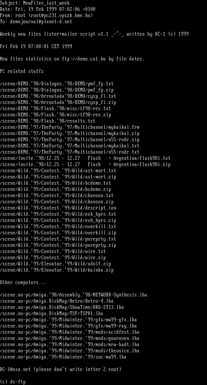 Weekly new files lister+mailer script v1.1 -- written by DC-1 c 1999