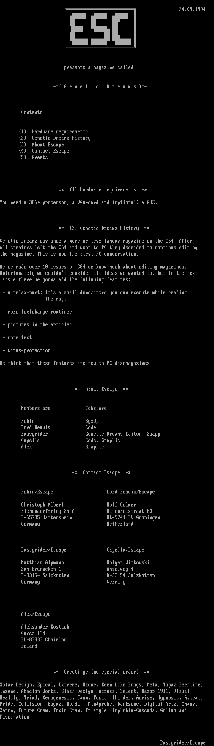 Genetic Dreams was once a more or less famous magazine on the C64. After