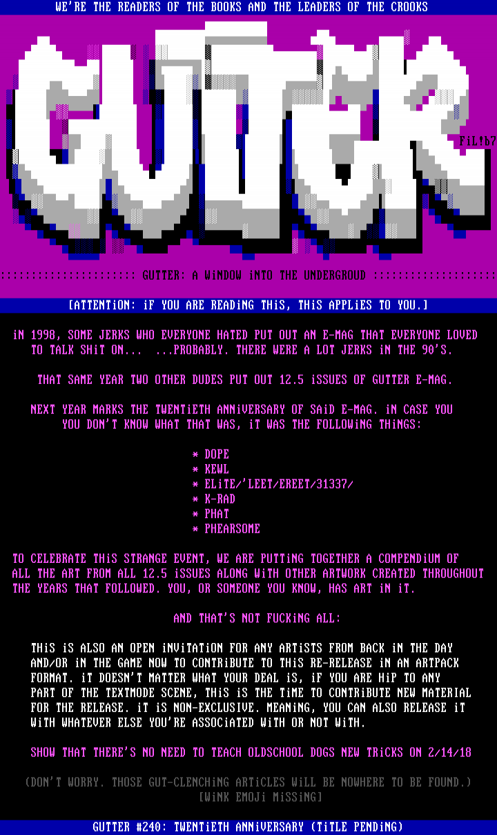 5CPART OF THE TEXTMODE SCENE, THiS iS THE TiME TO CONTRiBUTE NEW MATERIAL