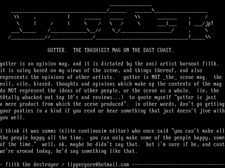 gutter is an opinion mag, and it is dictated by the ansi artist burnout filth.