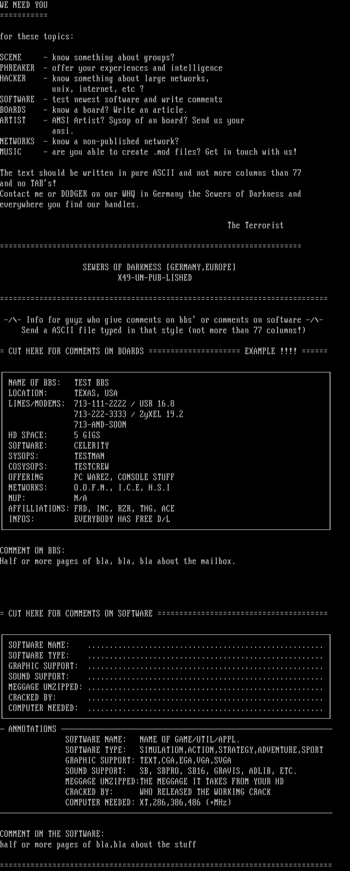 NAME OF BBS: TEST BBS
