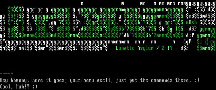 Hey bbunny, here it goes, your menu ascii, just put the commands there.