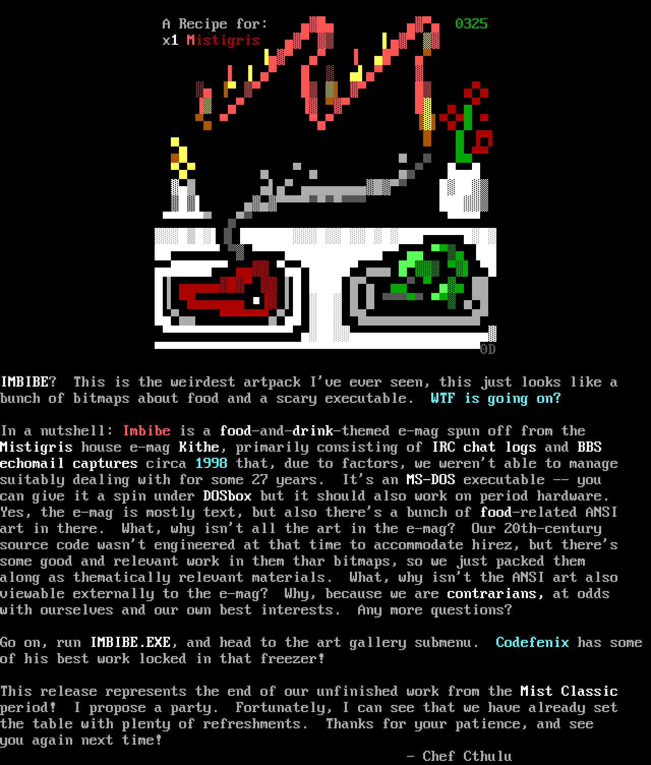 Yes, the e-mag is mostly text, but also theres a bunch of food-related ANSI