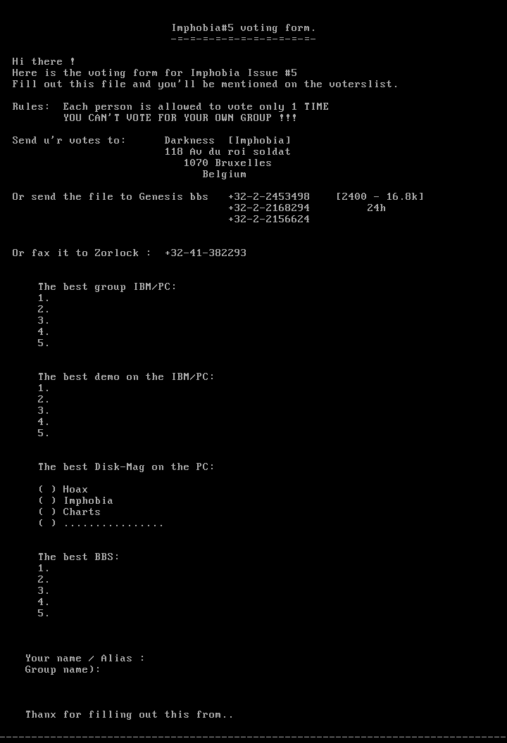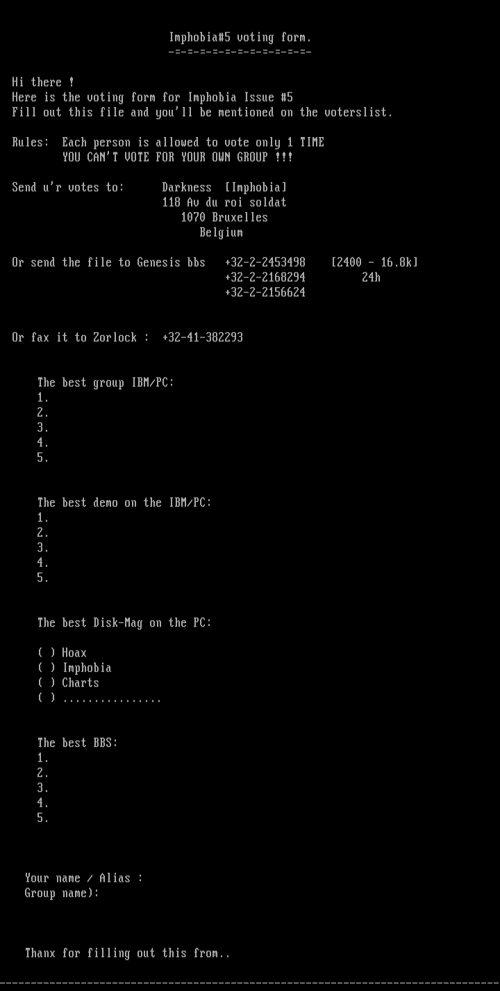 Or send the file to Genesis bbs +32-2-2453498 2400 - 16.8k