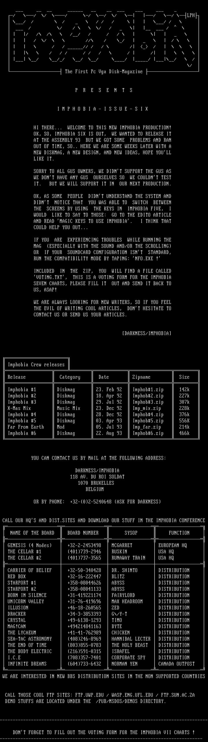 Imphobia 6 Diskmag 22. Aug 93 Imphob6.zip 466k
