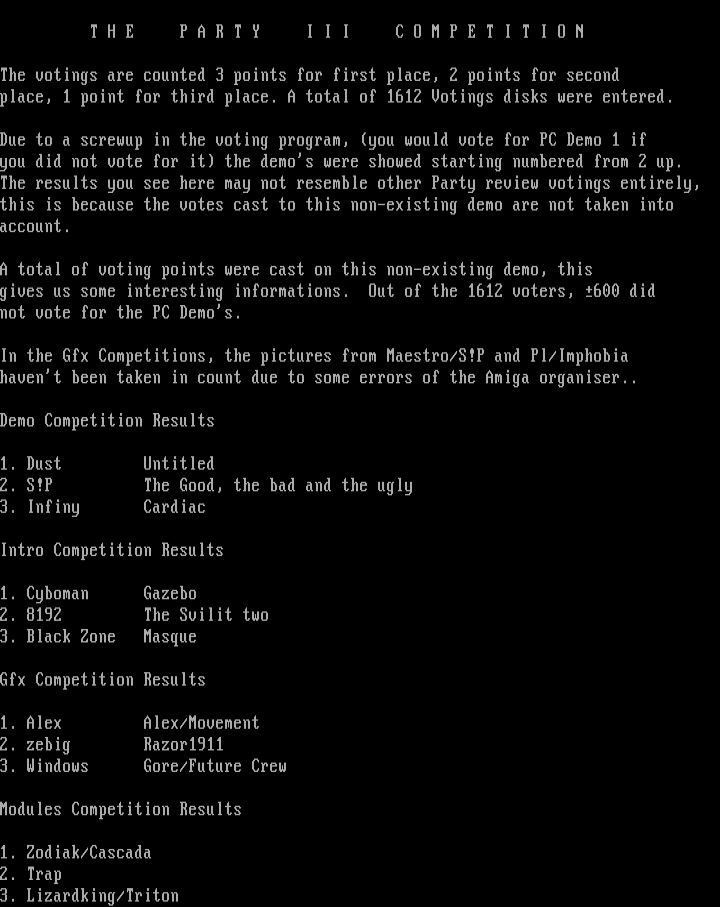 havent been taken in count due to some errors of the Amiga organiser..
