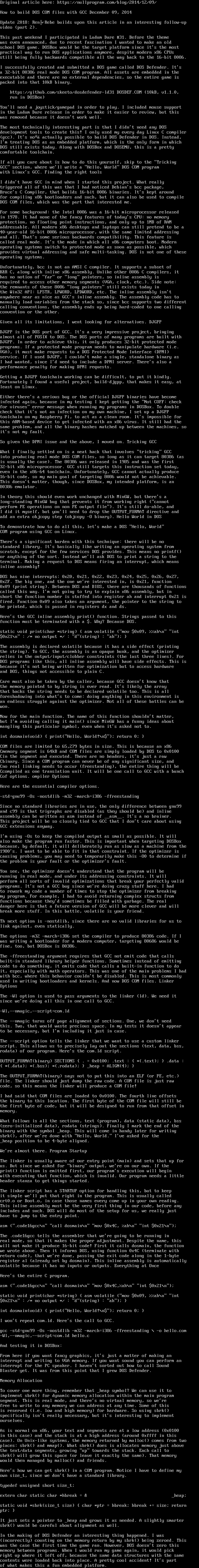 used in writing bootloaders and kernels. And now DOS COM files. Linker