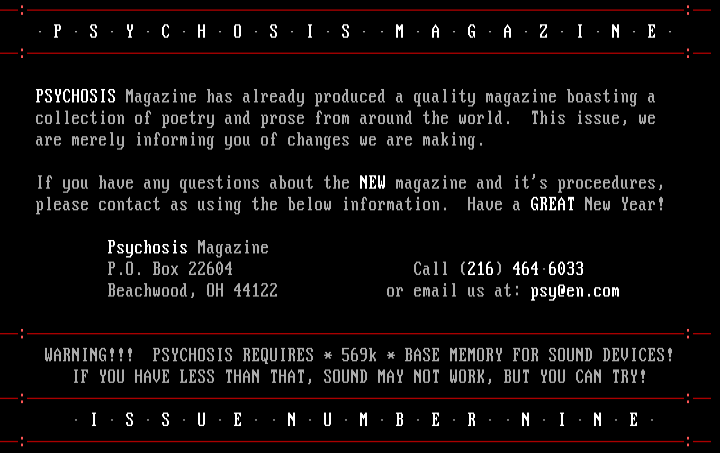 WARNING!!! PSYCHOSIS REQUIRES * 569k * BASE MEMORY FOR SOUND DEVICES!