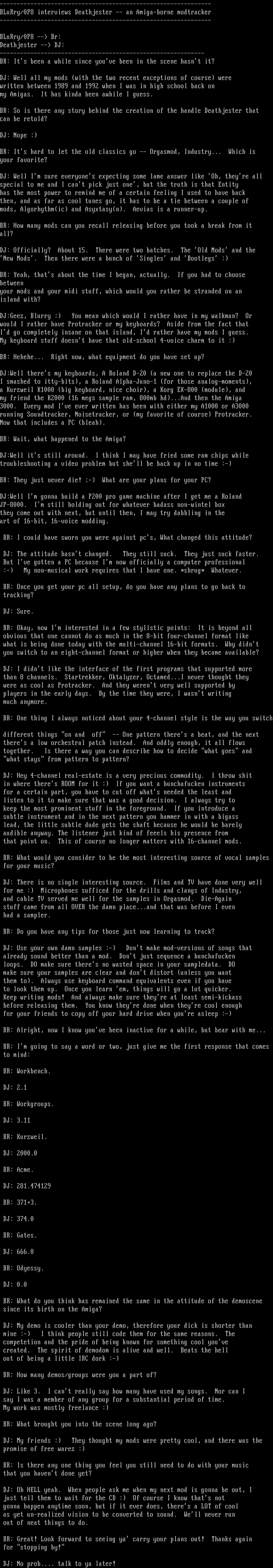 BLuRry/0P8 interviews Deathjester -- an Amiga-borne modtracker