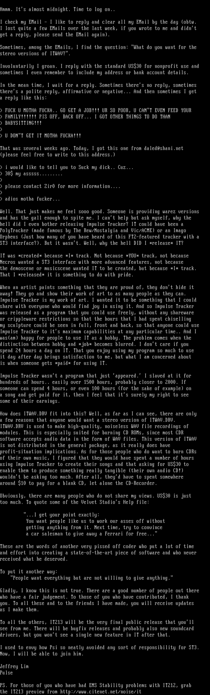 hell did I even bother releasing Impulse Tracker? IT could have been a