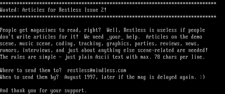 Wanted: Articles for Restless Issue 2!