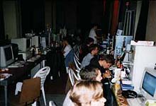 Und das, was im Netz passierte, war genauso interessant. Ein speziell eingerichteter Chat sorgte für interessante Kontaktmöglichkeiten. Irgend jemand benötigte eine leere Diskette. Die zweite Frage, die dann gestellt wurde, war: "An welchem Tisch sitzt du?" Es wurden, obwohl es sich nur um ein 10 Megabit Netz handelte, gigabyteweise Daten kopiert. Demos, Diskmags und alles, was einen Scener interessiert. Ganze Festplatteninhalte fanden neue Besitzer - einschließlich aller MP3's und Videos...