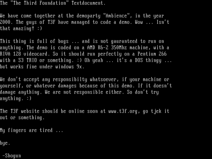 2000. The guys of T3F have managed to code a demo. Wow ... Isnt