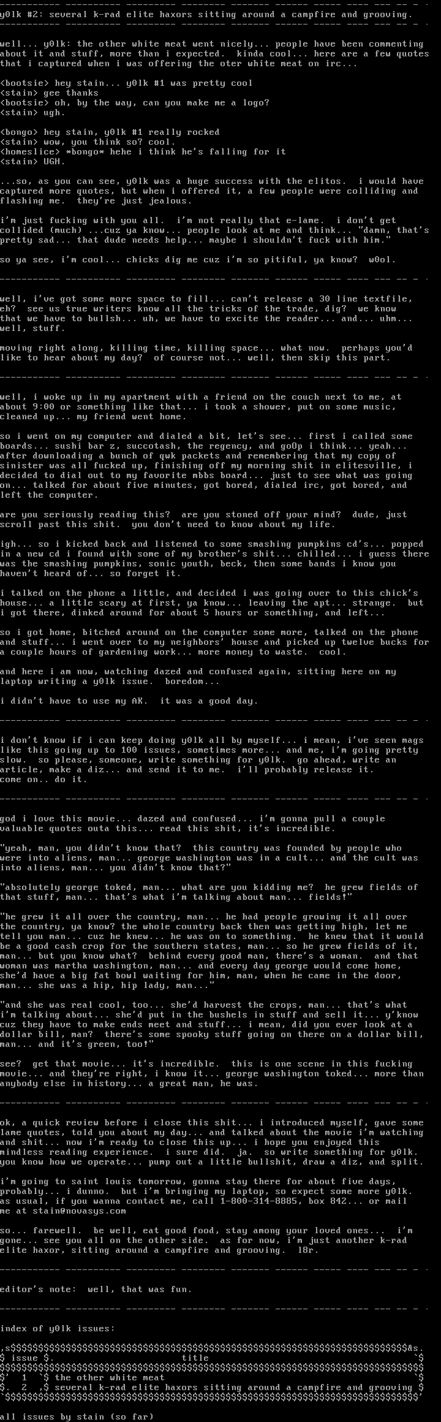 y0lk 2: several k-rad elite haxors sitting around a campfire and grooving.