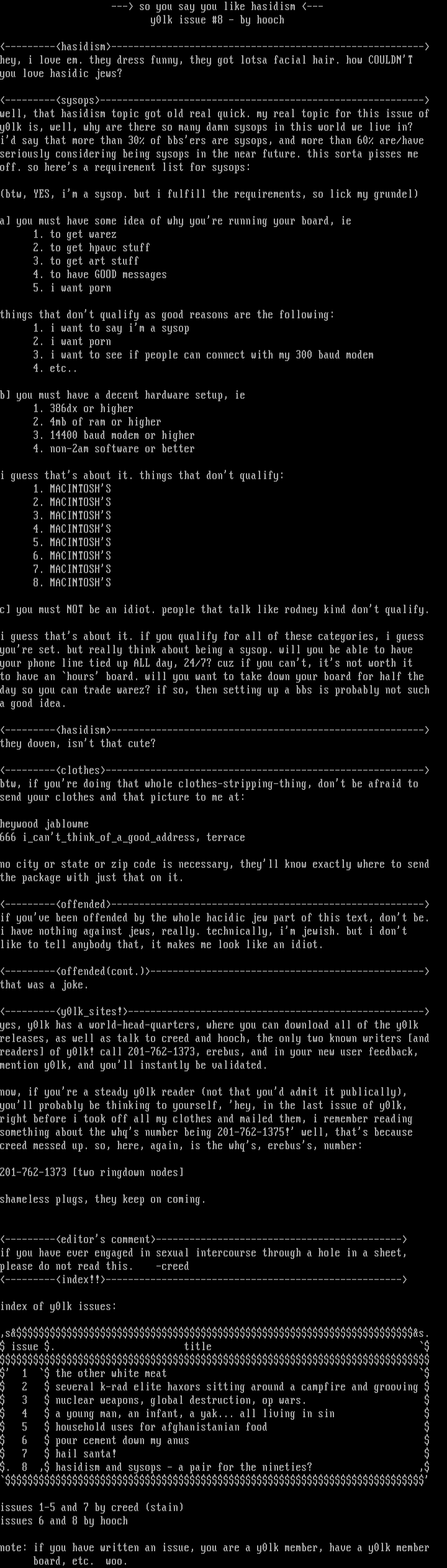 y0lk is, well, why are there so many damn sysops in this world we live in?
