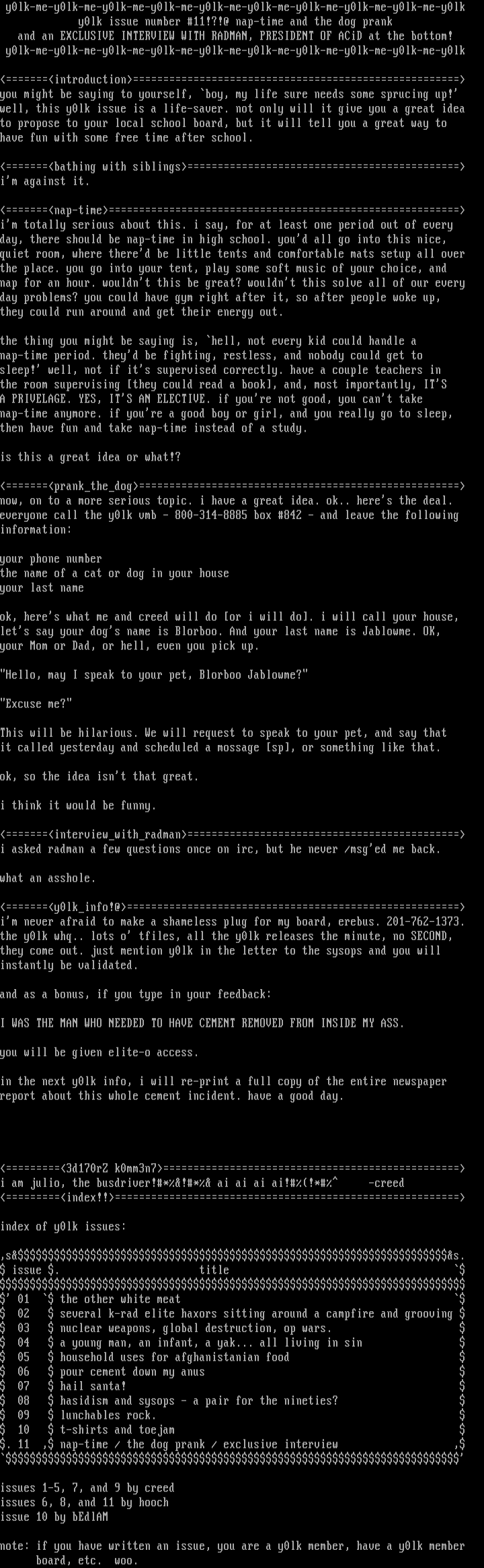 in the next y0lk info, i will re-print a full copy of the entire newspaper