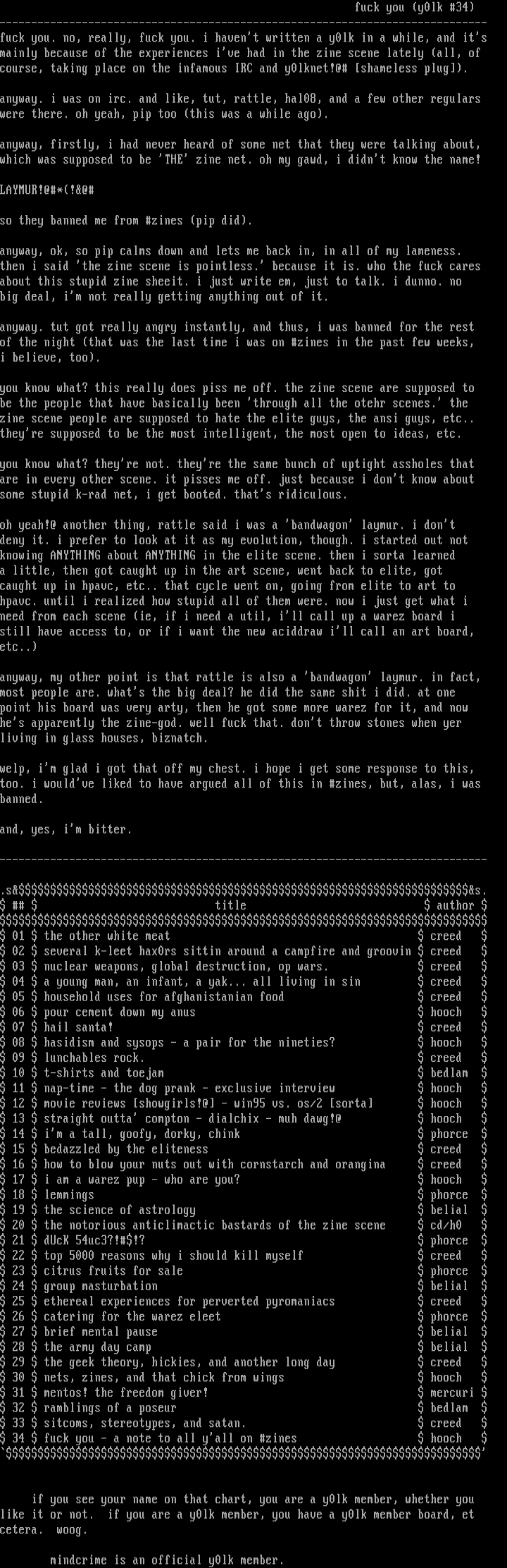 34 fuck you - a note to all yall on zines hooch