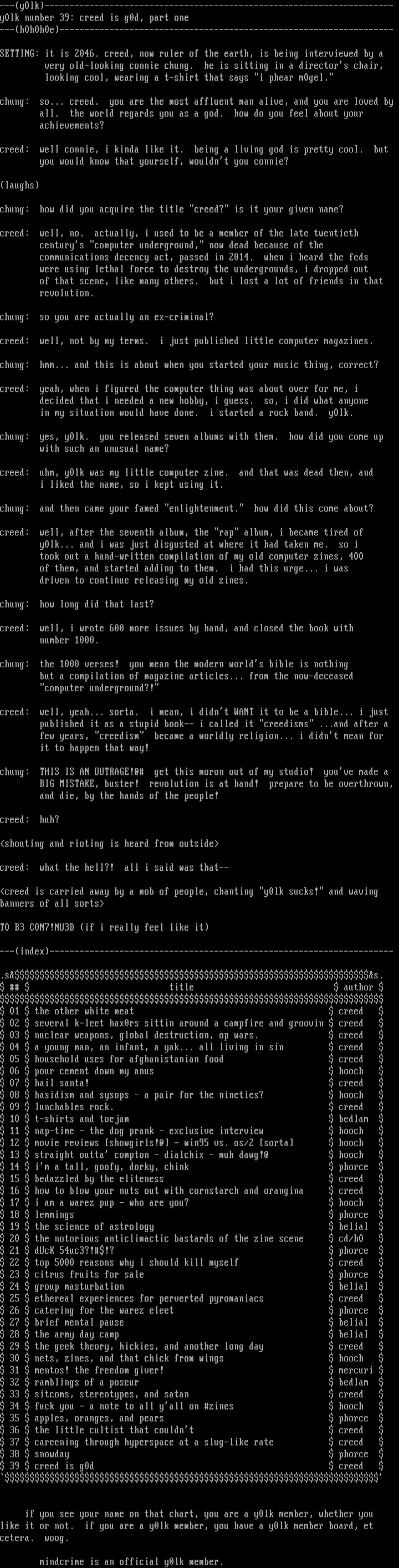 creed: uhm, y0lk was my little computer zine. and that was dead then, and