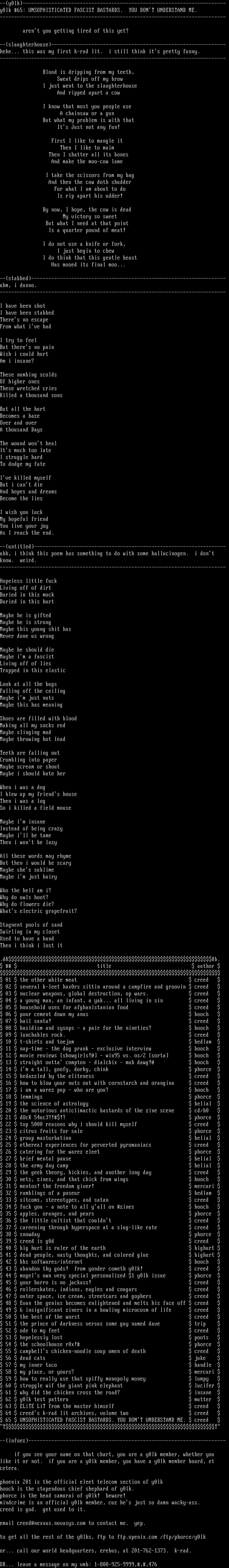 to get all the rest of the y0lks, ftp to ftp.openix.com /ftp/phorce/y0lk