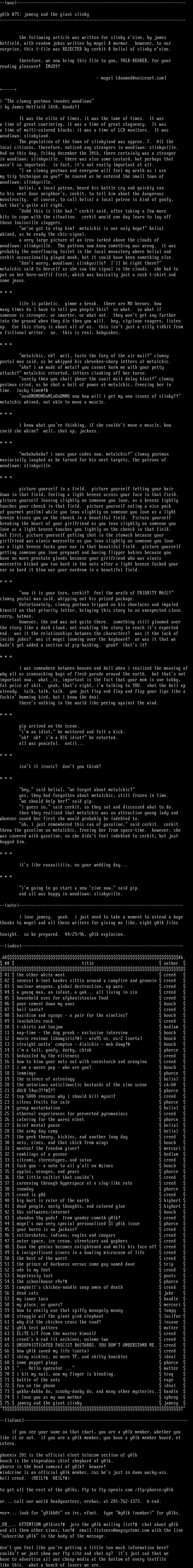 surprise, this t-file was REJECTED by cerkit belial of slinky ezine.