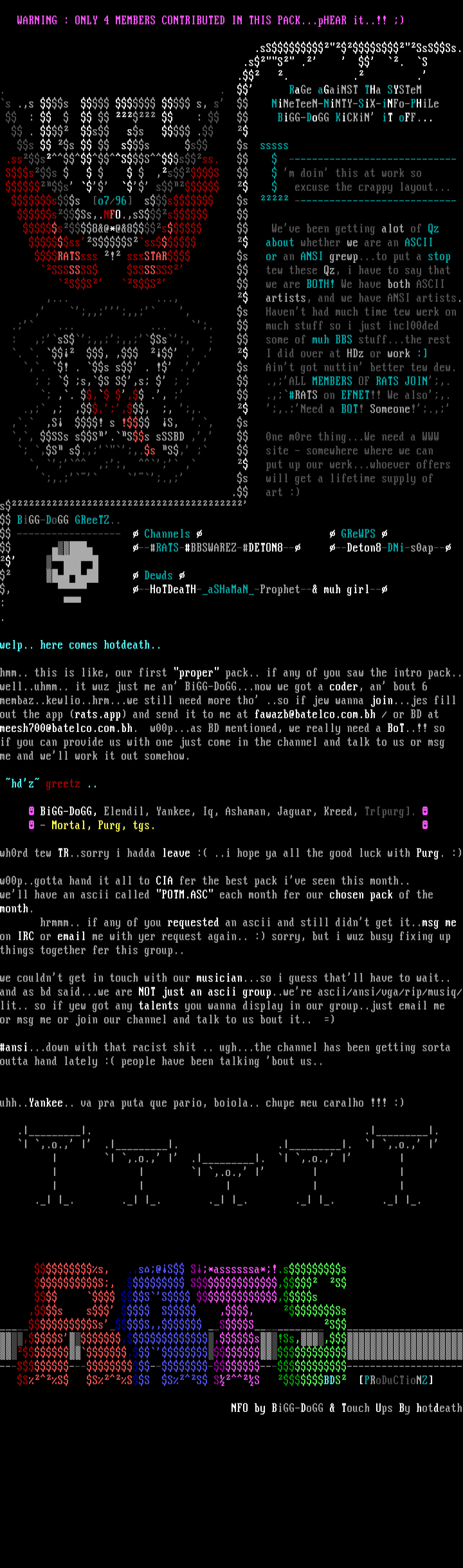 and as bd said...we are NOT just an ascii group..were ascii/ansi/vga/rip/musiq/lit.. so if yew got any talents you wanna display in our group..just email me