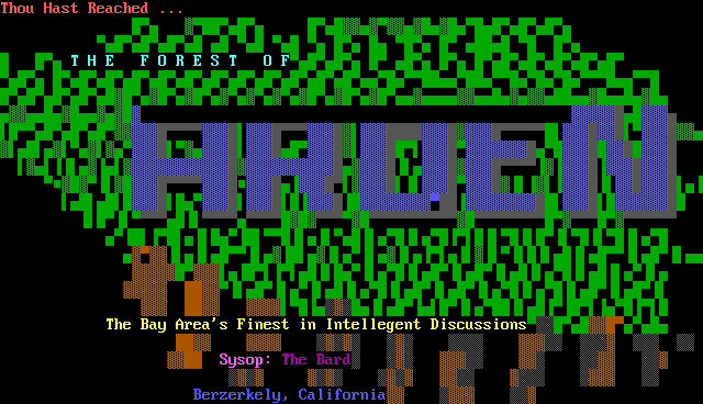 Thou Hast Reached ...T H E F O R E S T O FThe Bay Areas Finest in Intellegent DiscussionsSysop: