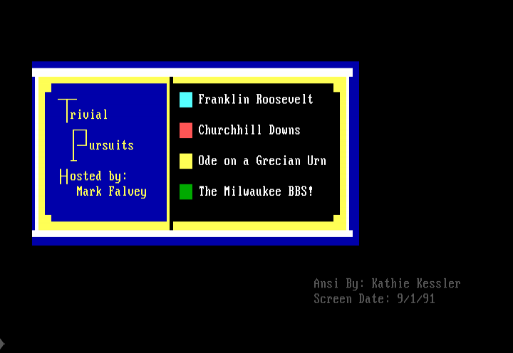 RooseveltChurchhill DownsOde on a Grecian UrnThe Milwaukee BBS!rivialursuitsosted by:Mark Falvey