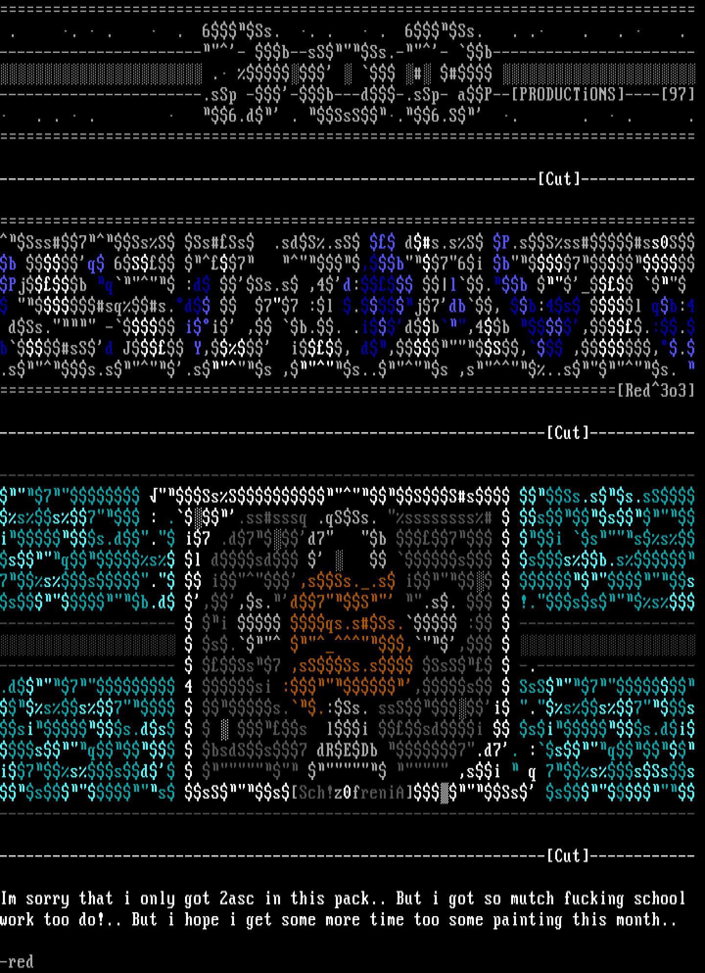 . . . . 6Ss. . . . 6Ss. . . . . . ------------------------ b--sSSs.-- b----------------------- . -----------------------.sSp --b---d-.sSp- aP--PRODUCTiONS----97 . . . 6.d . SsS.6.S . . . . -------------------------------------------------------------Cut-------------