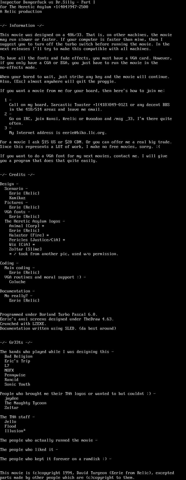 This movie is ccopyright 1994, David Turgeon Eerie from Relic, excepted