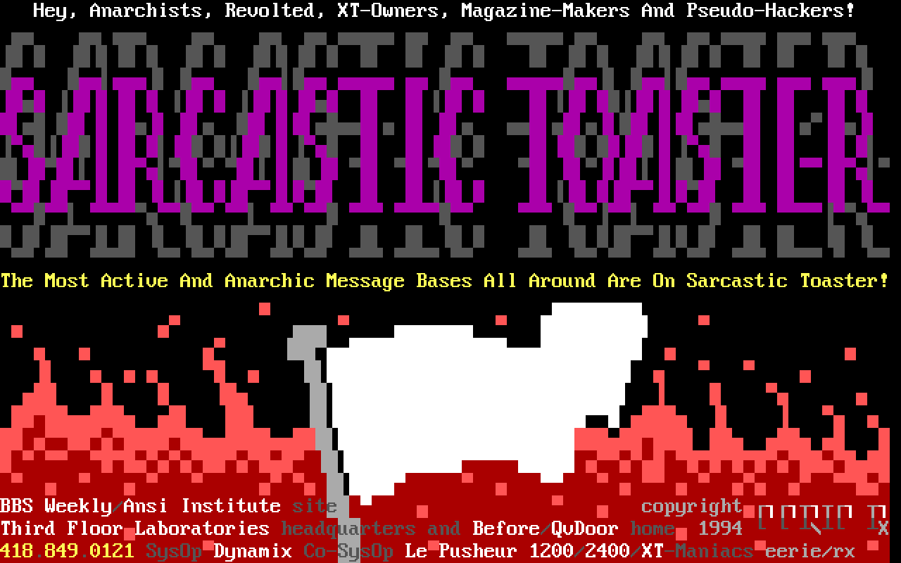 The Most Active And Anarchic Message Bases All Around Are On Sarcastic Toaster!