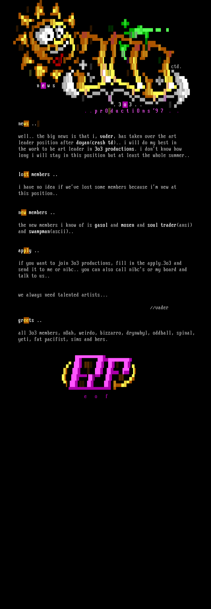 if you want to join 3o3 productions, fill in the apply.3o3 and