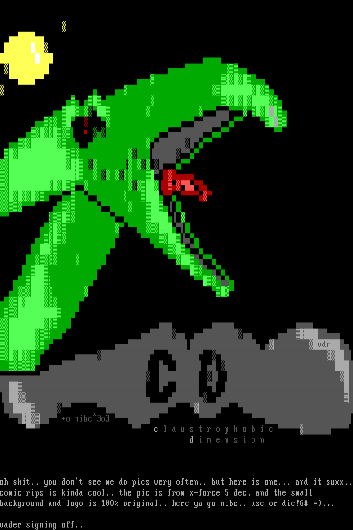 oh shit.. you dont see me do pics very often.. but here is one... and it suxx..comic rips is kinda cool.. the pic is from x-force 5 dec. and the small