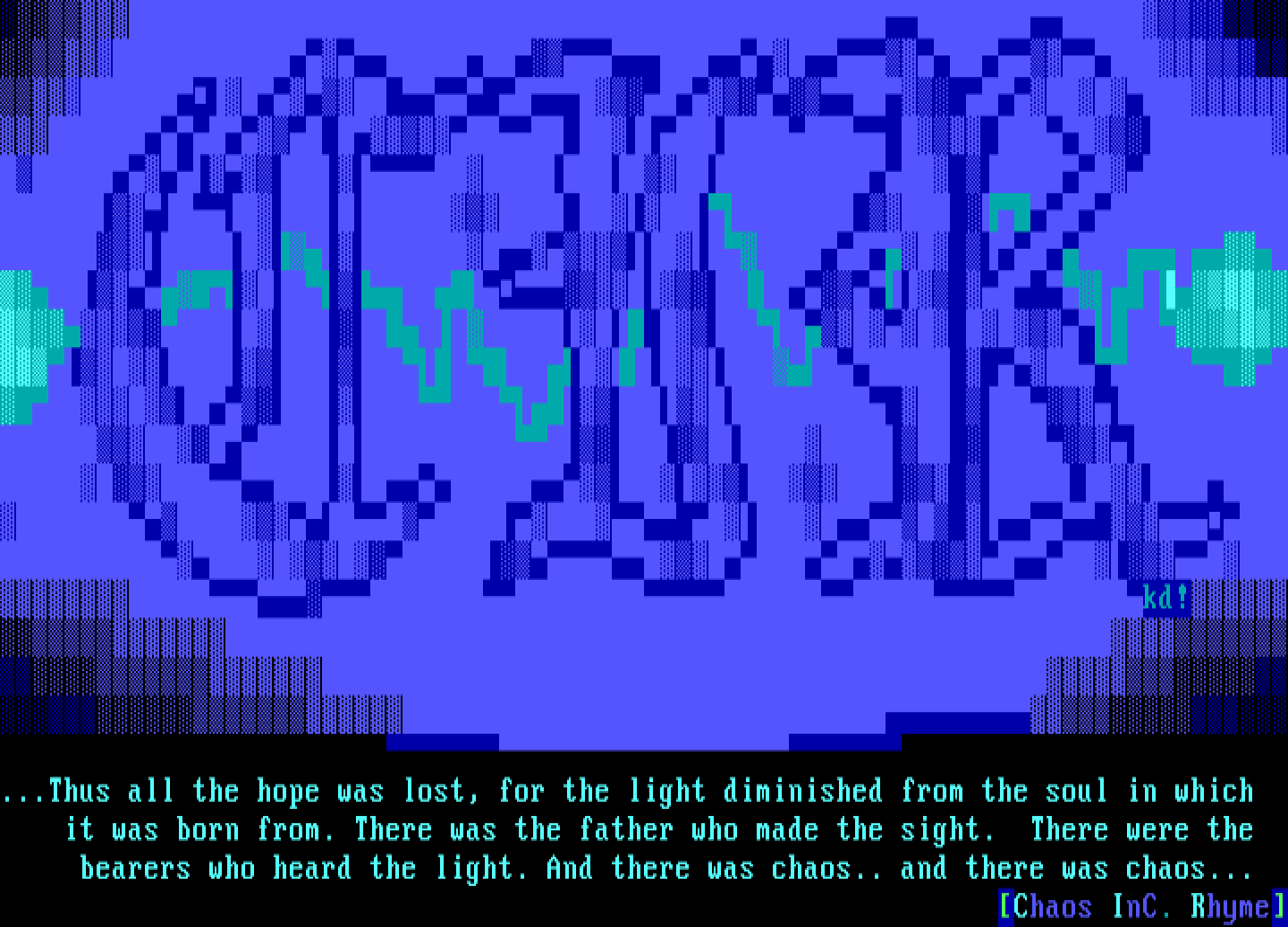 kd! ...Thus all the hope was lost, for the light diminished from the soul in which it was born from. There was the father who made the sight. There were the bearers who heard the light. And there was chaos.. and there was chaos... Chaos InC. Rhyme