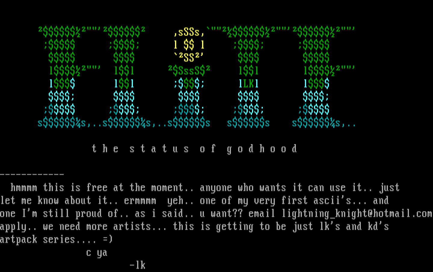 let me know about it.. ermmmm yeh.. one of my very first asciis... and