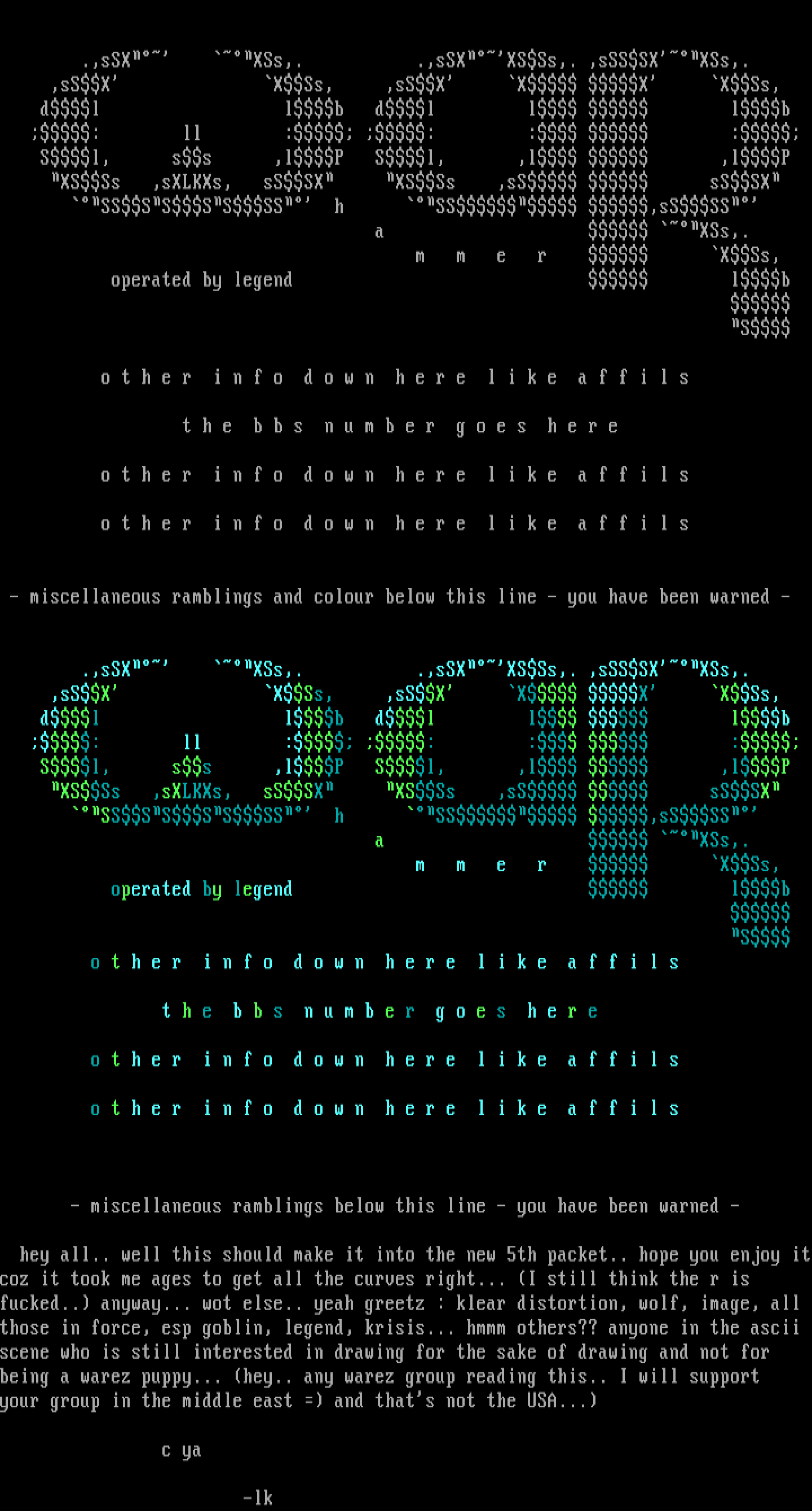 fucked.. anyway... wot else.. yeah greetz : klear distortion, wolf, image, all