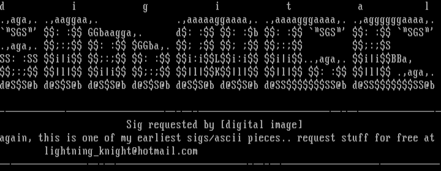 again, this is one of my earliest sigs/ascii pieces.. request stuff for free at