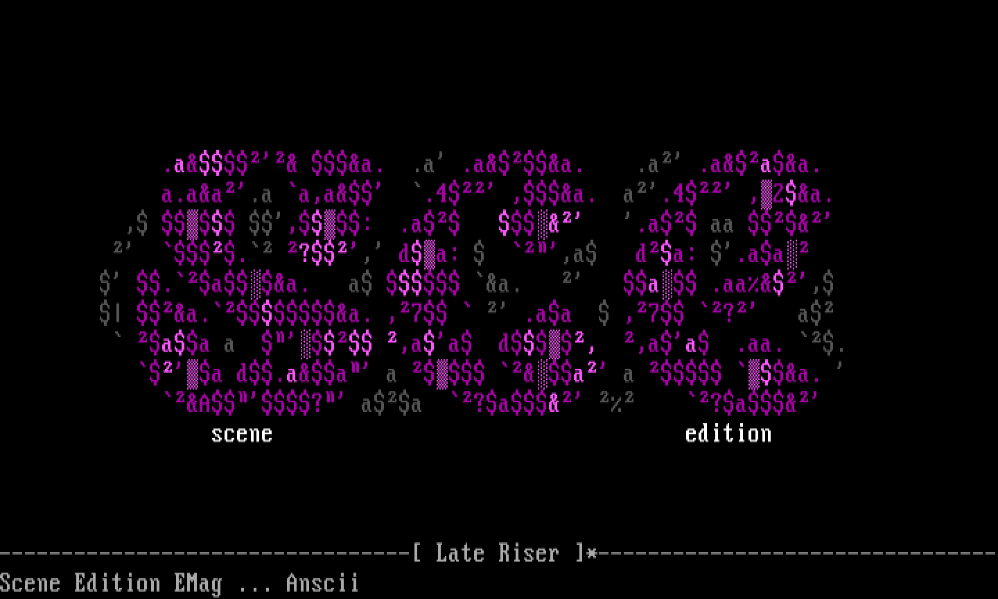 --------------------------------- Late Riser *--------------------------------Scene Edition EMag ... Anscii