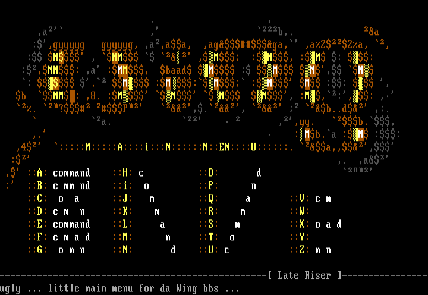 -------------------------------------------------- Late Riser ----------------ugly ... little main menu for da Wing bbs ...