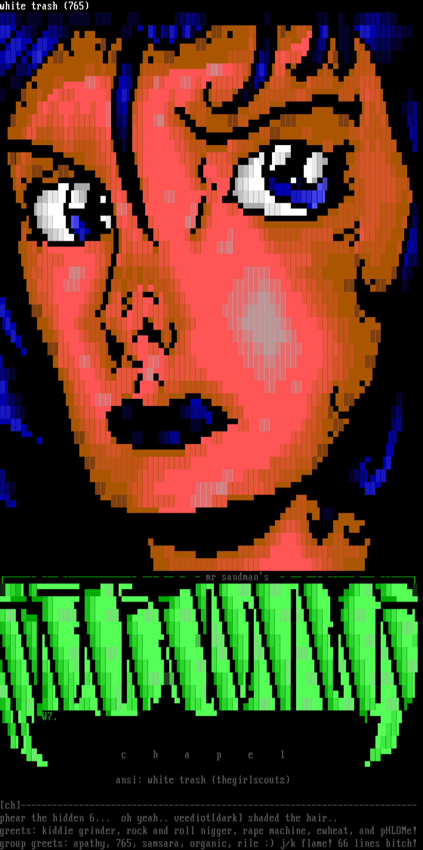 greets: kiddie grinder, rock and roll nigger, rape machine, ewheat, and pHLOMe!