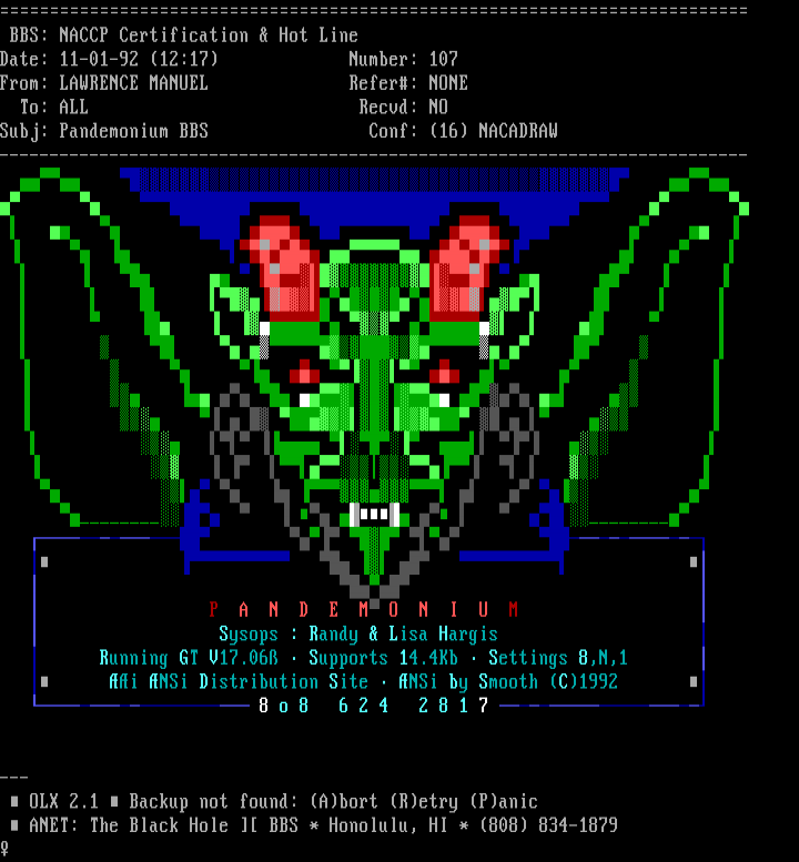 ANET: The Black Hole BBS * Honolulu, HI * 808 834-1879